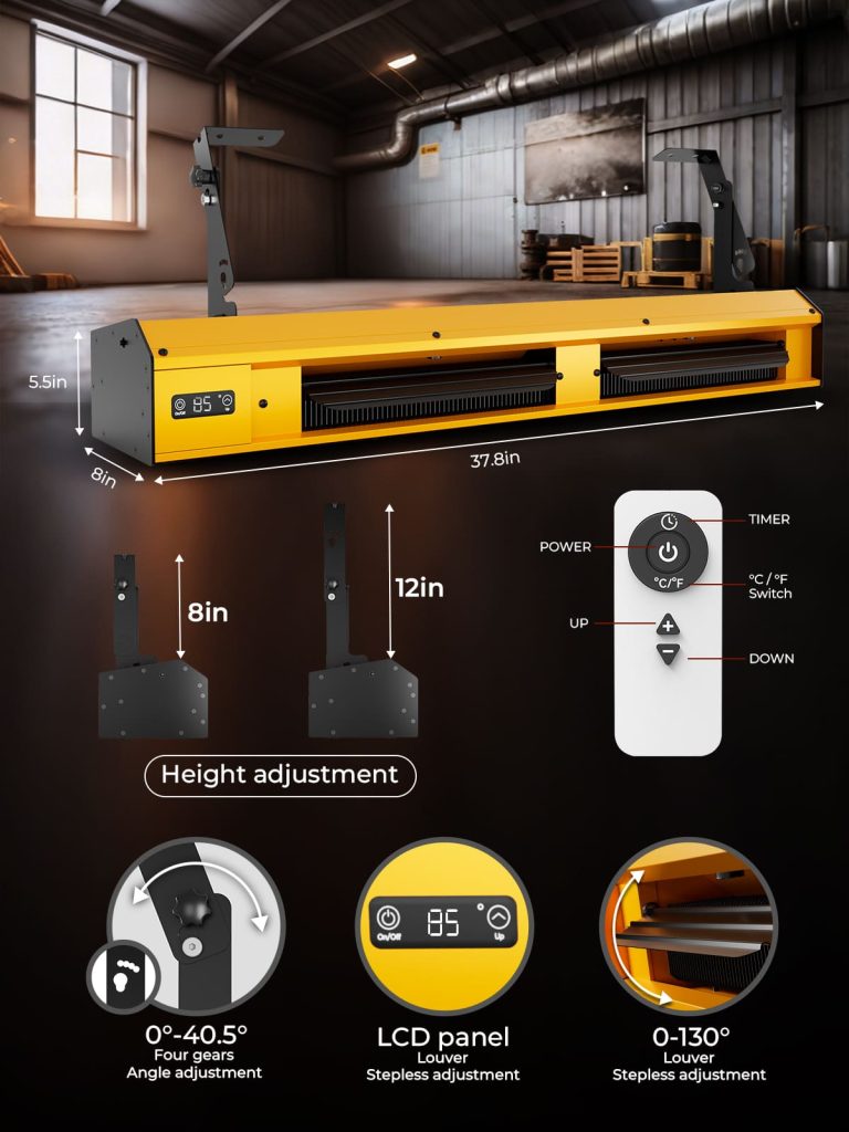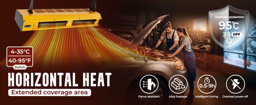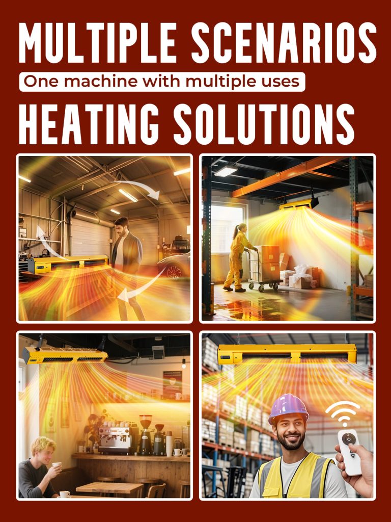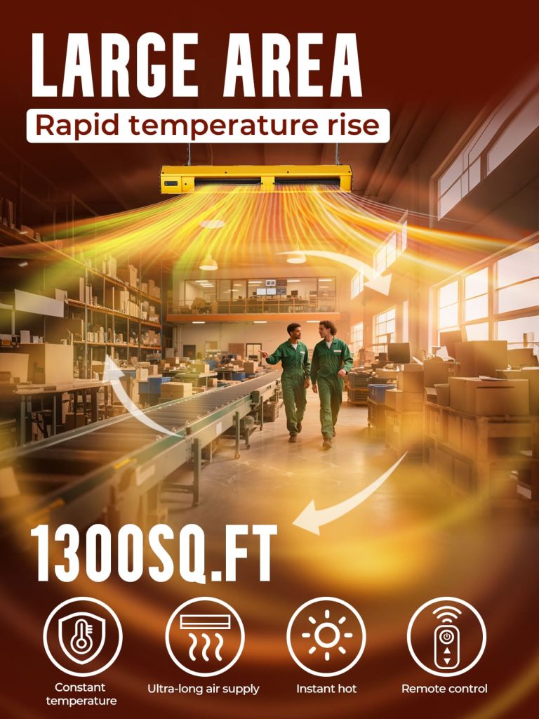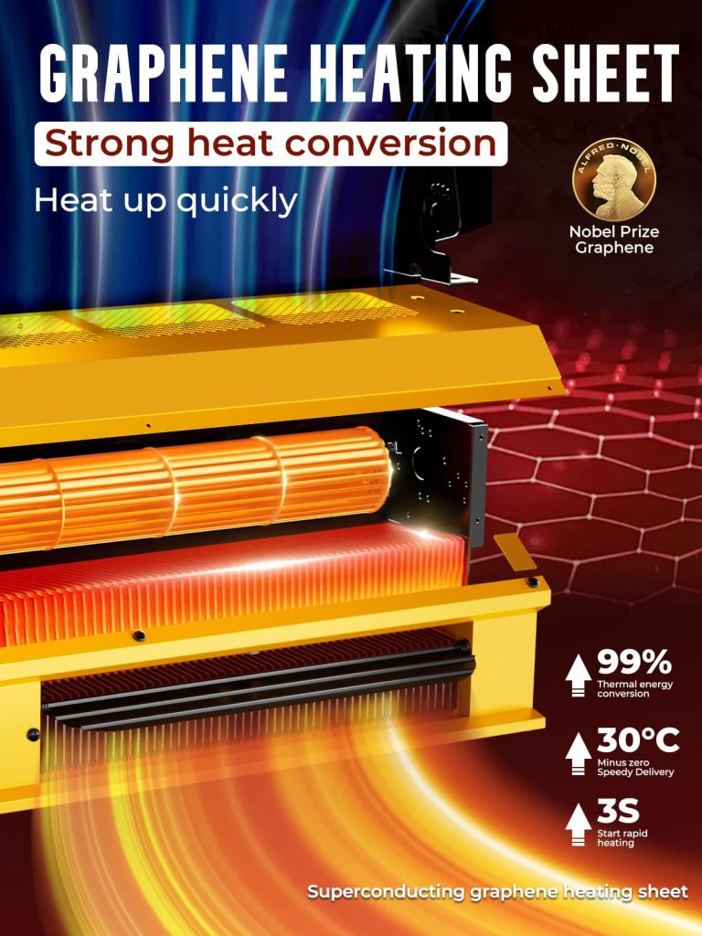 Electric Garage Heater 240V, 7000 Watt Graphene Heating for Indoor Use, 9-Hour Timer, Overheat Protect, Remote Control, Ceiling Mount Electric Shop Heater, Hardwired